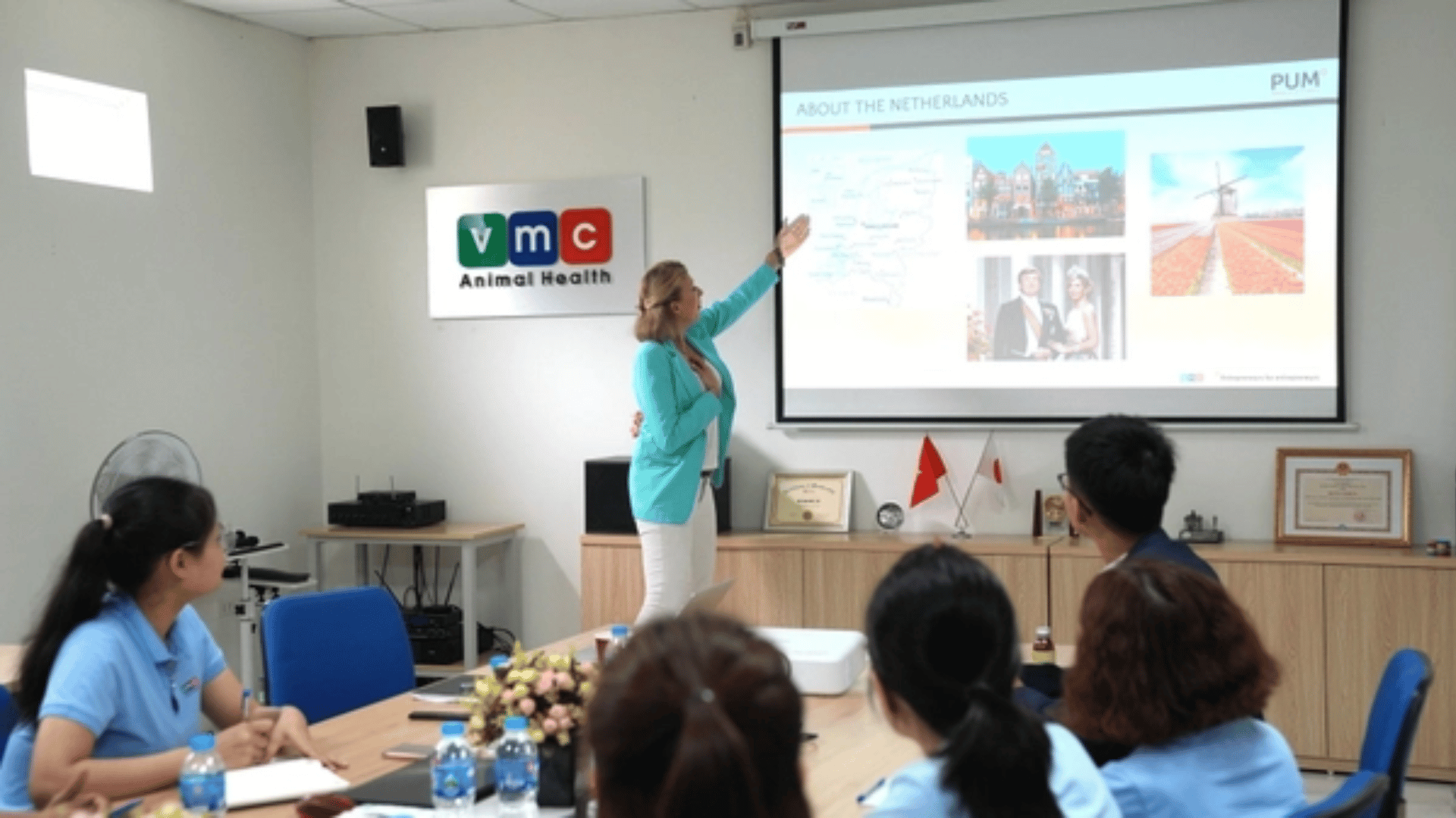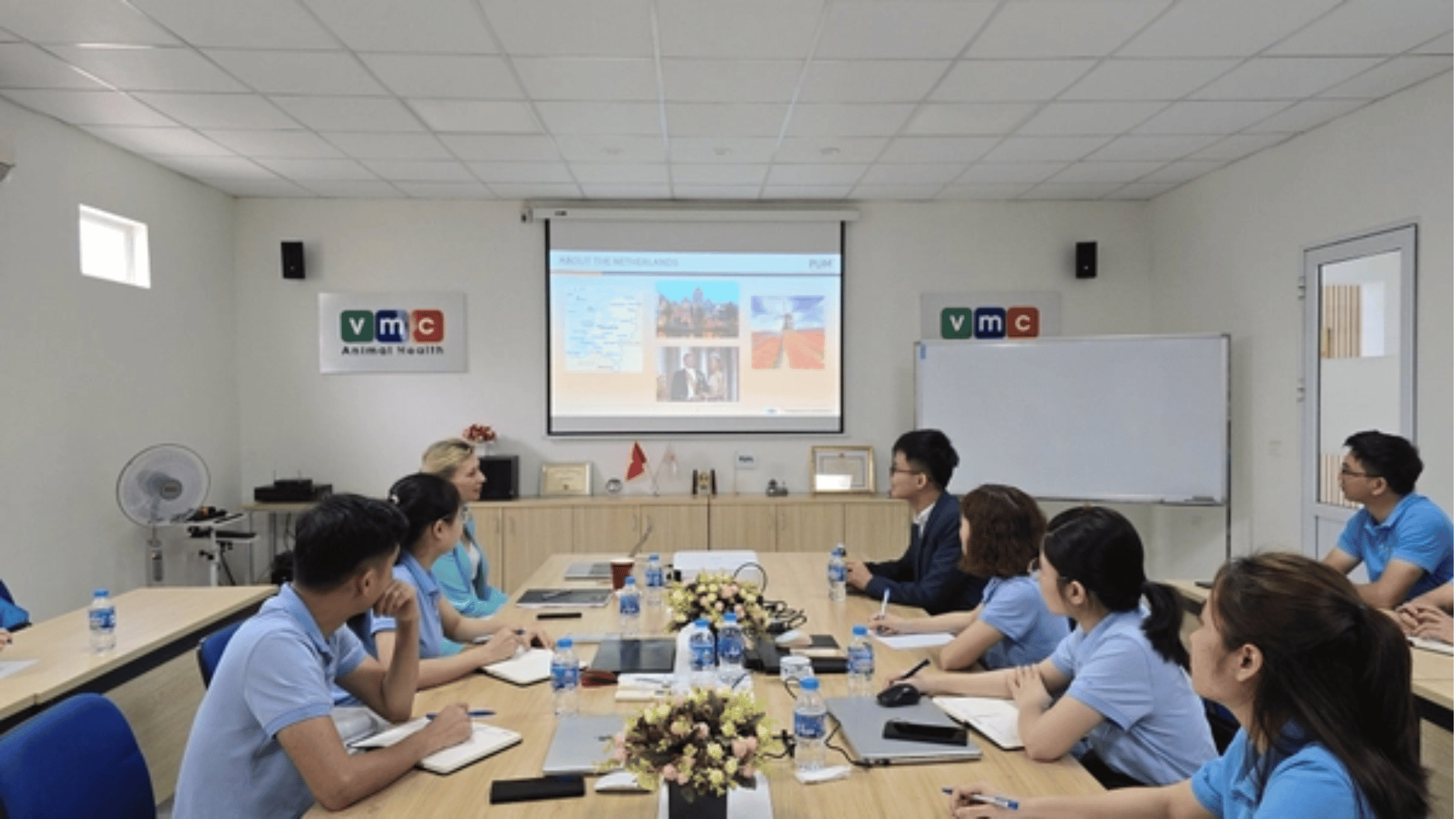 Theo dự án đã được tổ chức PUM – Hà Lan thông qua, trong thời gian từ ngày 11.4 đến ngày 24.4.2024 tại nhà máy GMP – WHO. Chuyên gia Annamarie đến từ tổ chức PUM sẽ có 2 tuần đào tạo và làm việc cùng ban lãnh đạo và phòng marketing của công ty. Bà Annamarie đã có nhiều năm làm giám đốc marketing cho những tập đoàn quốc tế lớn như Unilever, FrieslandCampina… với kinh nghiệm của mình, chuyên gia sẽ chia sẻ những kiến thức về marketing và tư vấn chiến lược marketing cho lĩnh vực gia cầm tại thị trường Việt Nam.