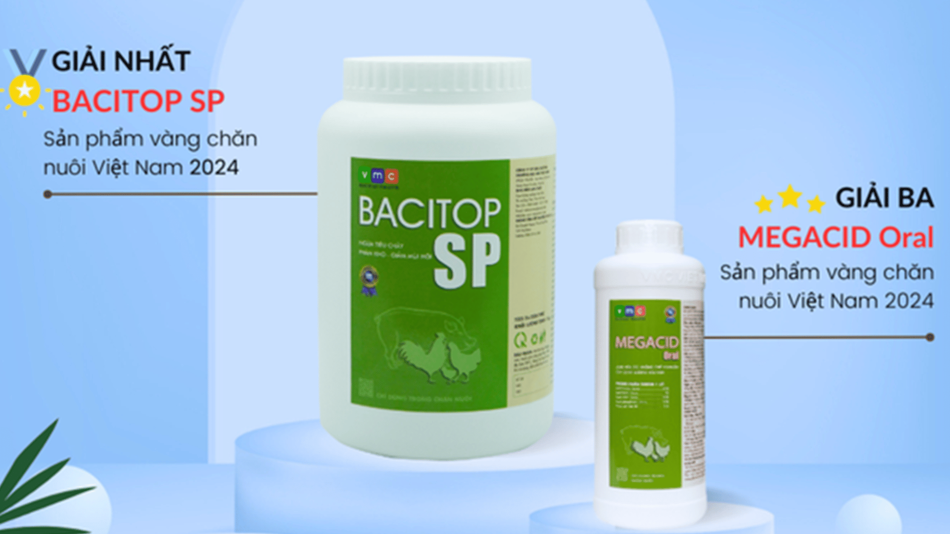 Trong 35 sản phẩm được vinh danh, Công ty cổ phần sản xuất và thương mại VMC Việt Nam tự hào là một trong những doanh nghiệp đoạt Giải nhất “ Sản phẩm Vàng chăn nuôi Việt Nam" lần thứ 3 đối với sản phẩm “Chế phẩm sinh học Probiotic BACITOP SP” sử dụng cho gia cầm và Giải Ba đối với sản phẩm “Acid hữu cơ – MEGACID ORAL”.