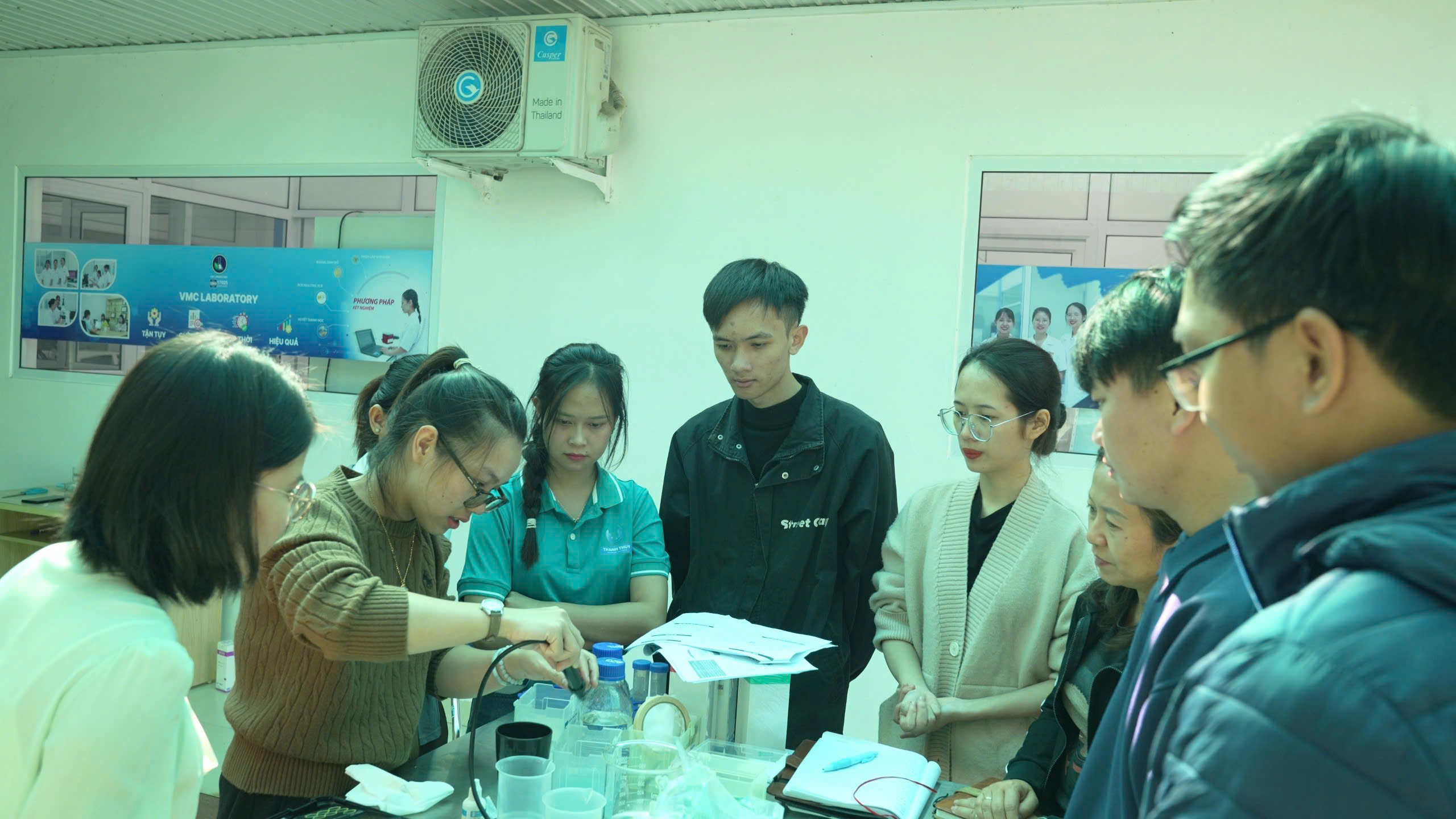 Trong khuôn khổ chương trình, đoàn cán bộ của Thanh Thủy đã tham quan Trung tâm xét nghiệm, chẩn đoán bệnh VMC Laboratory và nhà máy sản xuất đạt chuẩn GMP-WHO của VMC Việt Nam. Tại đây, hai bên đã trao đổi cởi mở về sản phẩm, giải đáp thắc mắc liên quan đến quy trình sản xuất cũng như các thách thức trong công tác xét nghiệm, chẩn đoán và điều trị bệnh thủy sản.