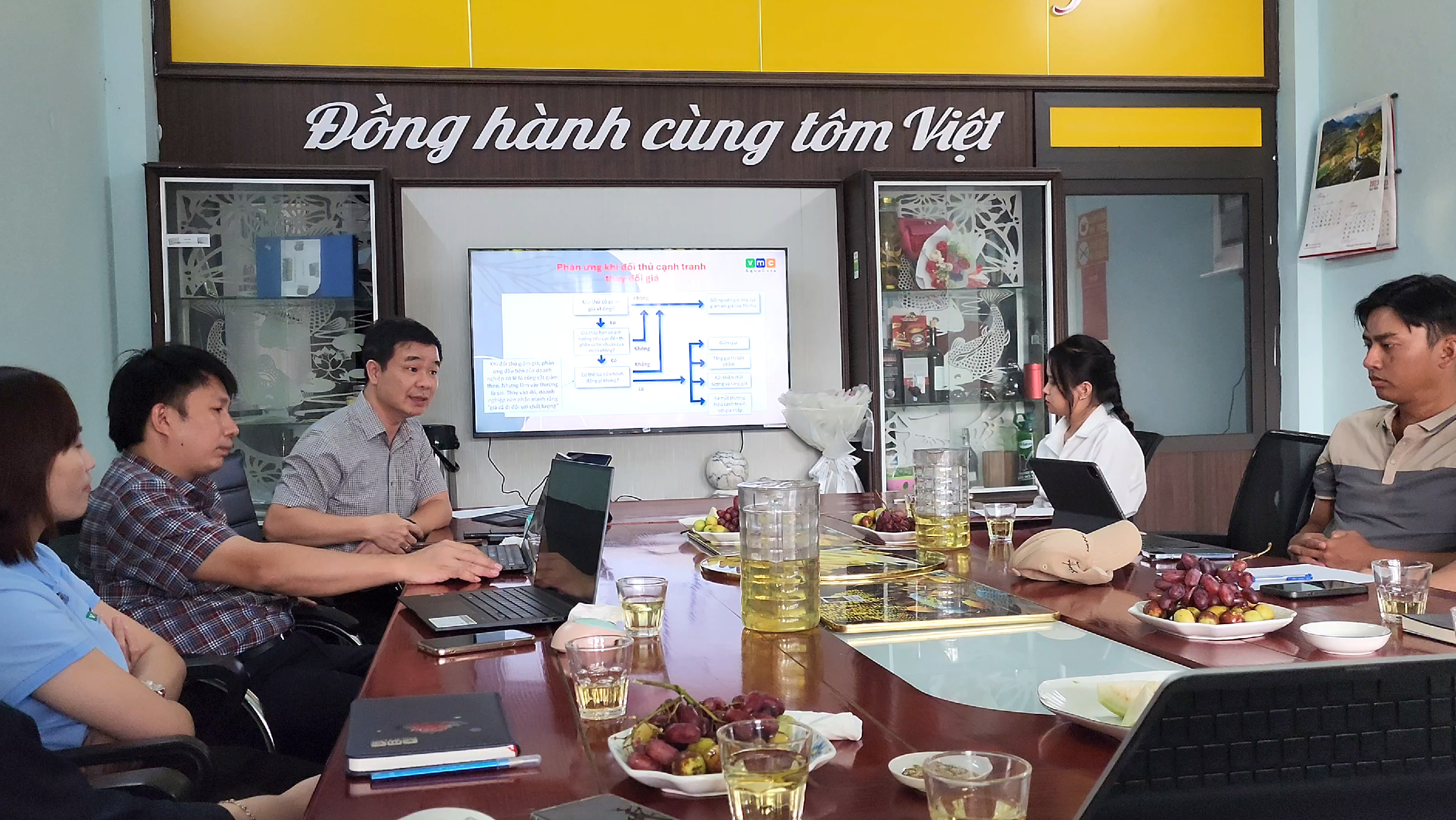 Hợp tác giữa hai công ty hướng đến việc đưa ra những giải pháp toàn diện mới giúp trại nuôi an toàn và phát triển bền vững. Tại buổi gặp mặt, ông Nguyễn Hữu Vinh, Giám đốc VMC Việt Nam, đã chia sẻ về chiến lược Marketing, với những định hướng về chiến lược giúp tăng cường khả năng tiếp cận thị trường và thúc đẩy sự phát triển sản phẩm thủy sản chất lượng cao. Nội dung chia sẻ giúp hai bên thấu hiểu nhau hơn và tạo ra nền tảng vững chắc để cùng hướng tới mục tiêu chung.