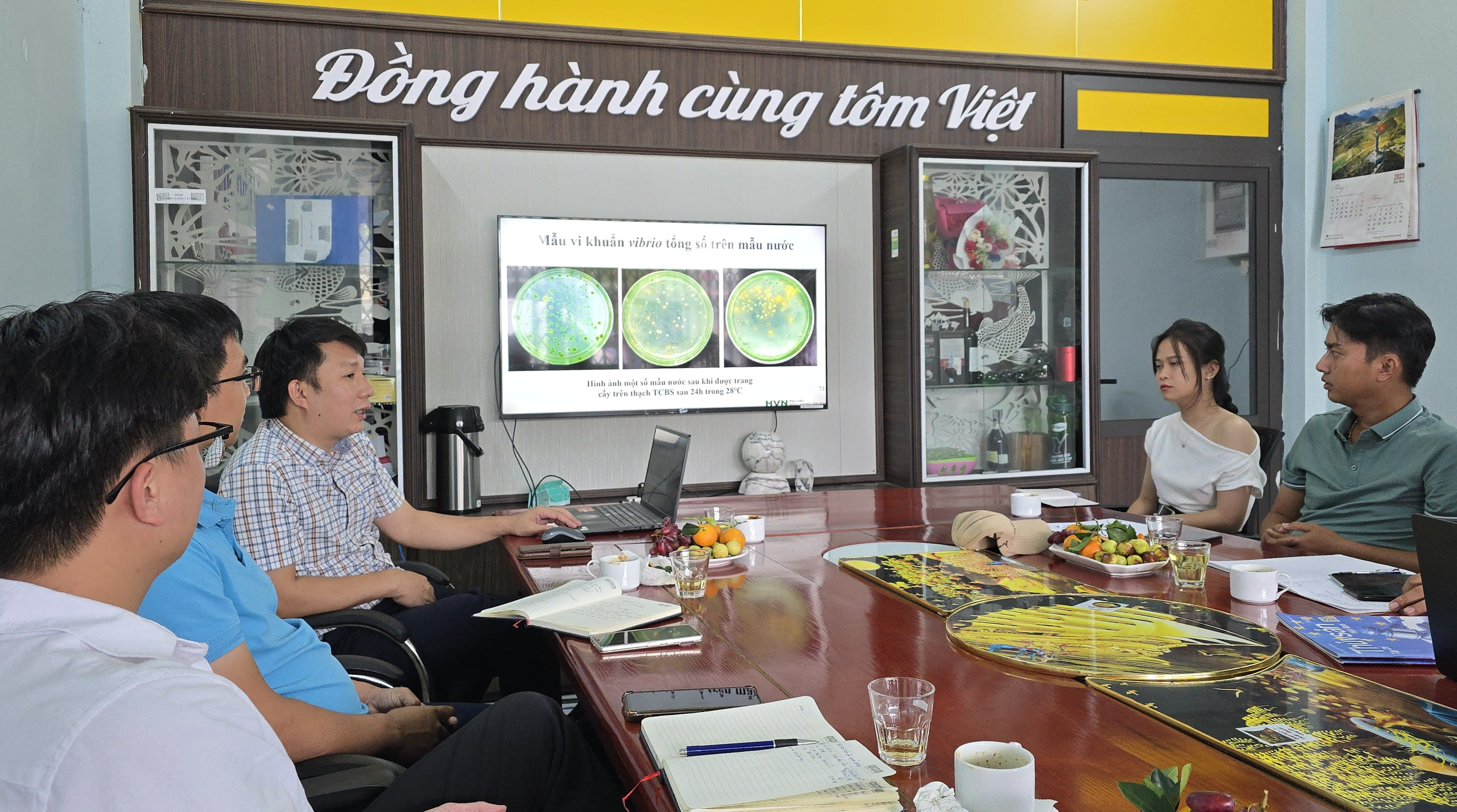 Trước đó, Công ty VMC Việt Nam và Thanh Thủy đã có buổi tham quan tại phòng thí nghiệm trọng điểm về bệnh học thủy sản tại Học viện nông nghiệp do PGS.TS Trương Đình Hoài phụ trách. Buổi tham quan này giúp các bên hiểu rõ hơn về năng lực nghiên cứu và hỗ trợ của phòng Lab, đồng thời đặt nền móng cho một mối quan hệ hợp tác ba bên vững chắc.