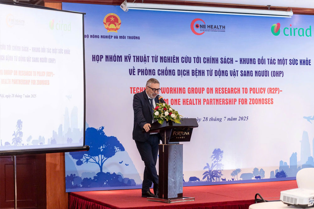 Ngày 28/7/2025, tại Hà Nội, Bộ Nông nghiệp và Môi trường phối hợp cùng Tổ chức CIRAD và các đối tác trong và ngoài nước đã tổ chức cuộc họp khởi động Nhóm công tác kỹ thuật “Từ Nghiên cứu tới Chính sách” (Research to Policy – R2P) thuộc Khung Đối tác Một Sức Khỏe Việt Nam (OHP Viet Nam Partnership Framework).
