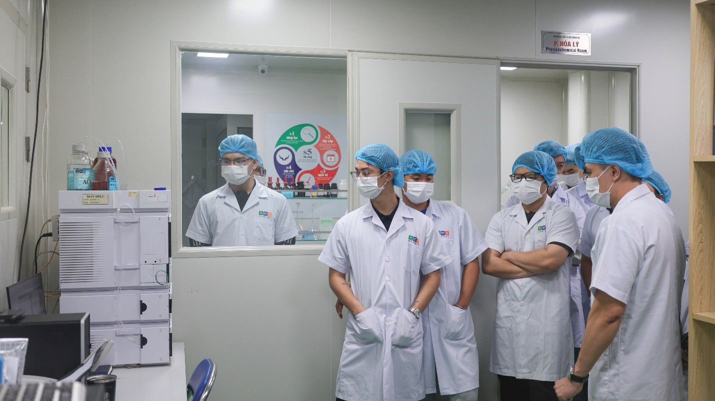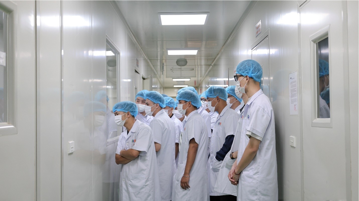 Trong khuôn khổ chương trình, đoàn sinh viên đã được trực tiếp tham quan hệ thống phòng thí nghiệm VMC Laboratory, quan sát dây chuyền sản xuất thuốc thú y, thủy sản đạt tiêu chuẩn GMP - WHO, tìm hiểu quy trình kiểm soát chất lượng nghiêm ngặt. Qua đó, các bạn có cái nhìn toàn diện về công nghệ sản xuất, quản lý chất lượng và các tiêu chuẩn an toàn sinh học – những yếu tố then chốt đang định hình tương lai ngành thú y và thủy sản Việt Nam.
