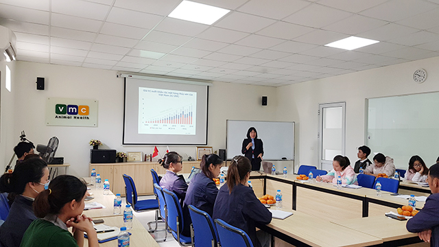 Với mục đích giúp cán bộ nghiên cứu, sản xuất và khách hàng hiểu sâu hơn về vai trò của dinh dưỡng trong nuôi trồng thủy hải sản, đặc biệt là vai trò trong việc phòng bệnh và nâng cao sức đề kháng của vật nuôi. Công ty VMC Việt Nam đã tổ chức thành công buổi đào tạo “Sử dụng chất dinh dưỡng để nâng cao hệ miễn dịch cho thủy sản” với sự giảng dạy của PGS.TS. Trần Thị Nắng Thu – Phó Trưởng khoa Thủy sản, Học viện Nông nghiệp Việt Nam. Nội dung đào tạo bao gồm: