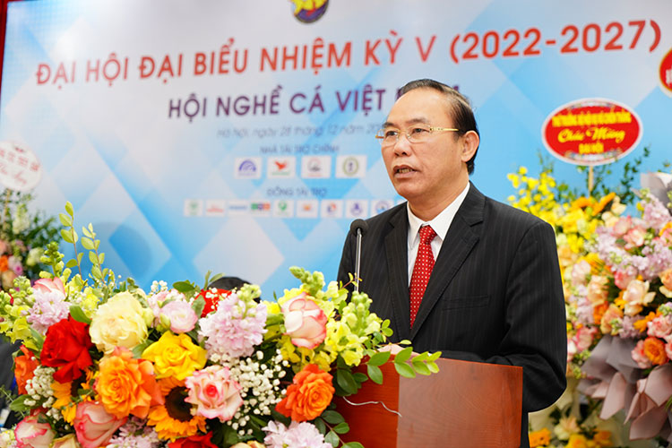 Thứ trưởng Phùng Đức Tiến phát biểu tại Đại hội Hội Nghề cá Việt Nam lần thứ V sáng ngày 28/12/2022