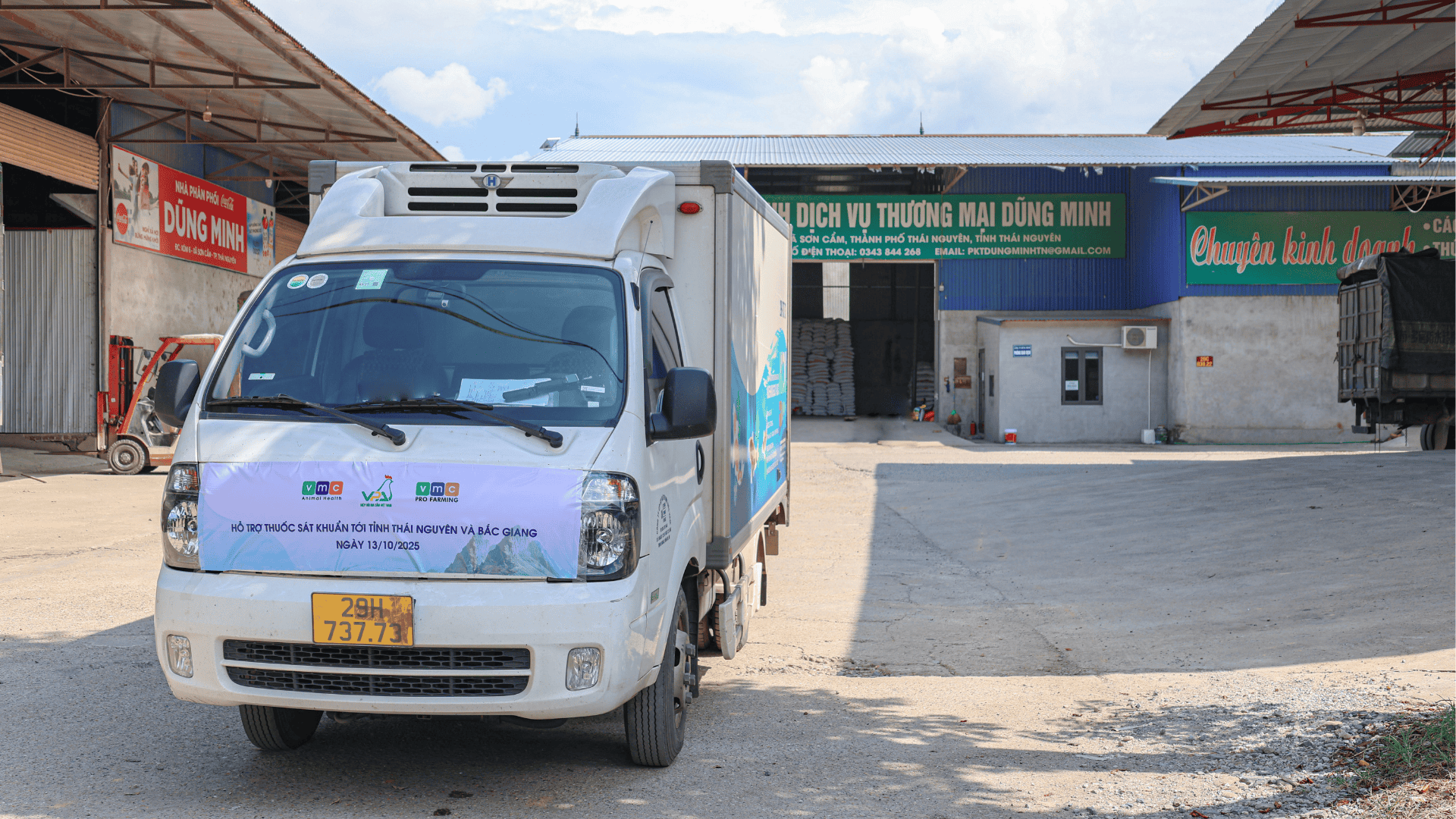 Trước thực tế đó, ngày 13/10/2025, Công ty VMC Việt Nam đã triển khai chương trình hỗ trợ 2.000 lít thuốc sát trùng thông qua 4 nhà phân phối: Công ty cổ phần sản xuất kinh doanh Dũng Minh, Nhà phân phối Lợi Hằng, Công ty Thanh Tùng Thái Nguyên và Nhà phân phối Tĩnh Chiên tại hai tỉnh Thái Nguyên và Bắc Giang – những địa phương chịu ảnh hưởng trực tiếp sau bão.