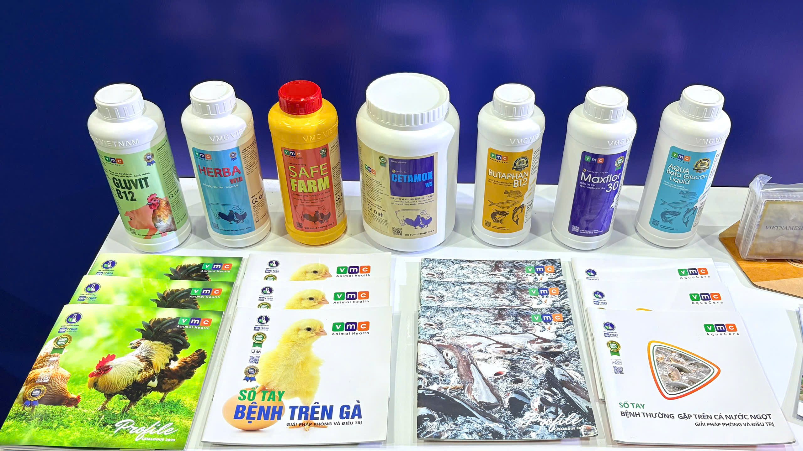 Tham dự hội chợ, VMC Việt Nam giới thiệu đến khách tham quan bộ sản phẩm VMC Animal Health – Giải pháp toàn diện trong chăm sóc, điều trị và phòng ngừa bệnh cho gia súc, gia cầm và bộ sản phẩm VMC Aqua Care, dòng sản phẩm chuyên biệt dành cho cá nước ngọt.