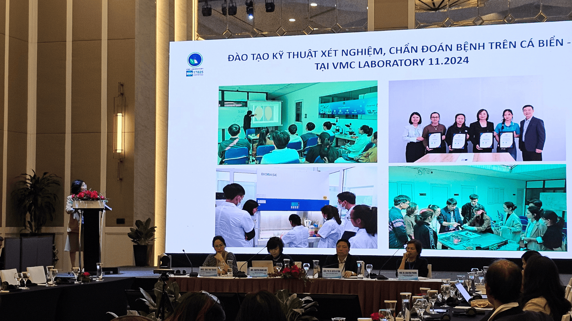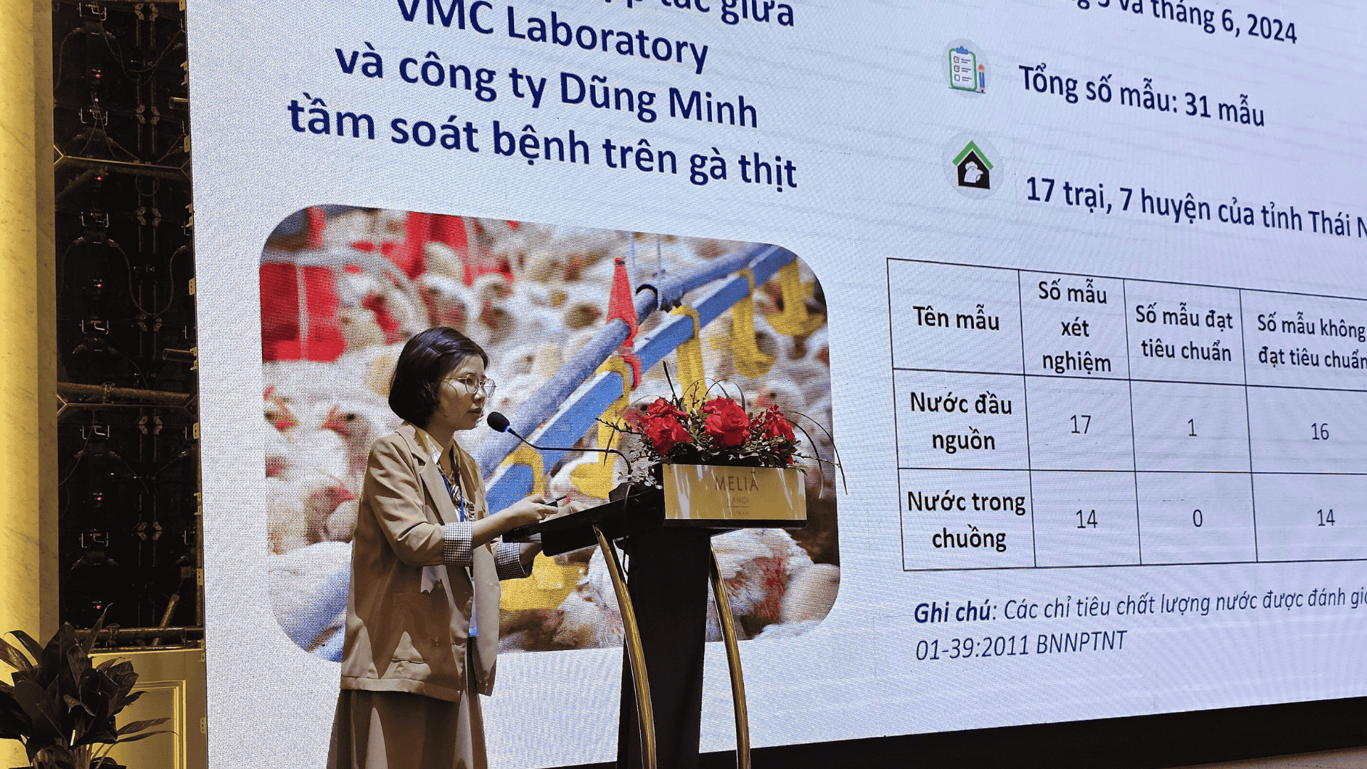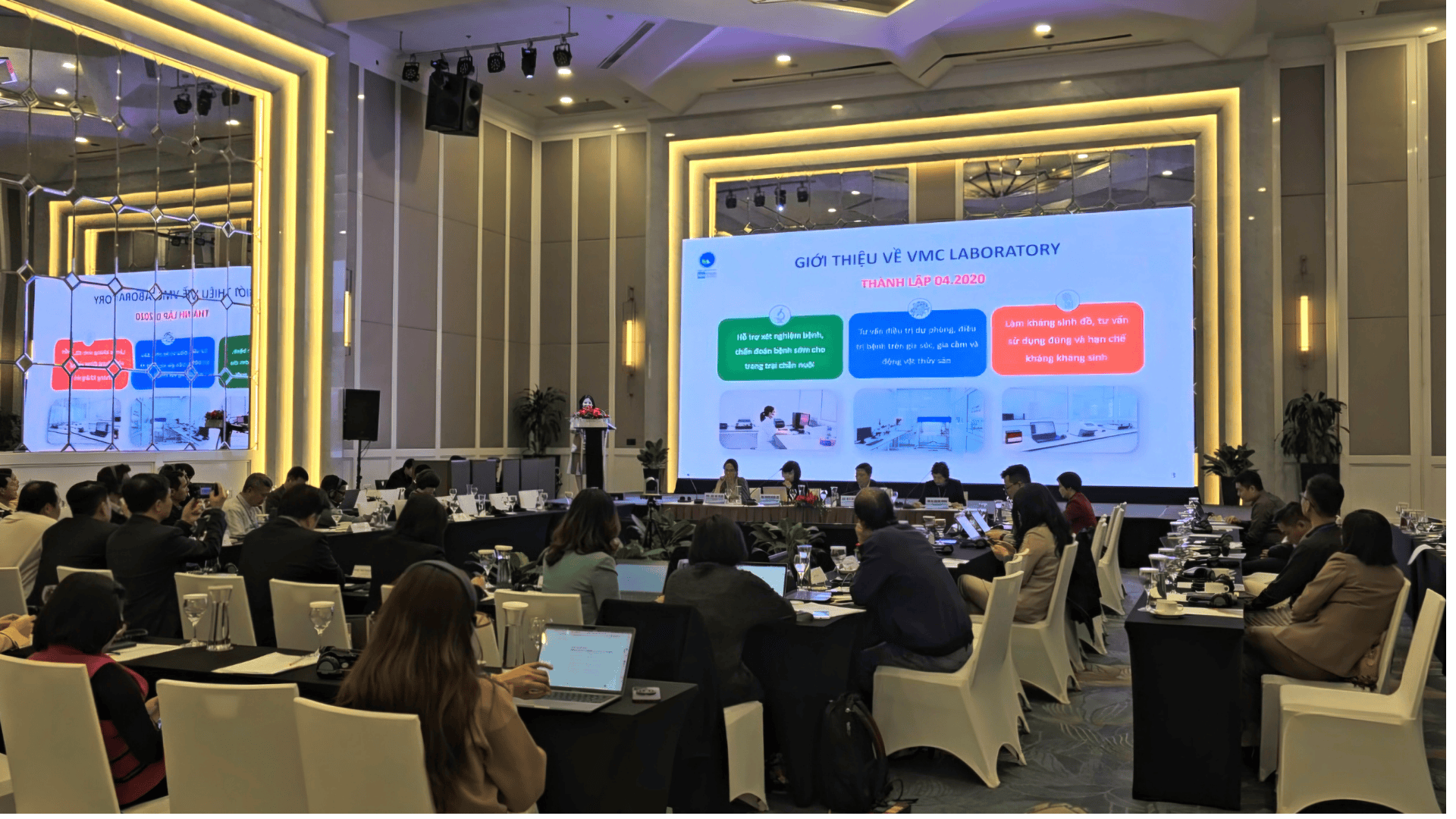 Công ty VMC Việt Nam và Trung tâm xét nghiệm, chẩn đoán bệnh - VMC Laboratory được mời tham dự hội nghị và trình bày 1 bài chia sẻ về những hoạt động, đóng góp của doanh nghiệp tư nhân Việt Nam trong việc hợp tác với các công ty chăn nuôi, trang trại lớn thiết lập và thực hiện công việc tầm soát bệnh, xét nghiệm sớm bệnh do vi khuẩn, làm kháng sinh đồ để kiểm soát sử dụng kháng sinh, dùng đúng kháng sinh, xoay vòng kháng sinh hợp lý và kiểm soát chi phí trong chăn nuôi.
