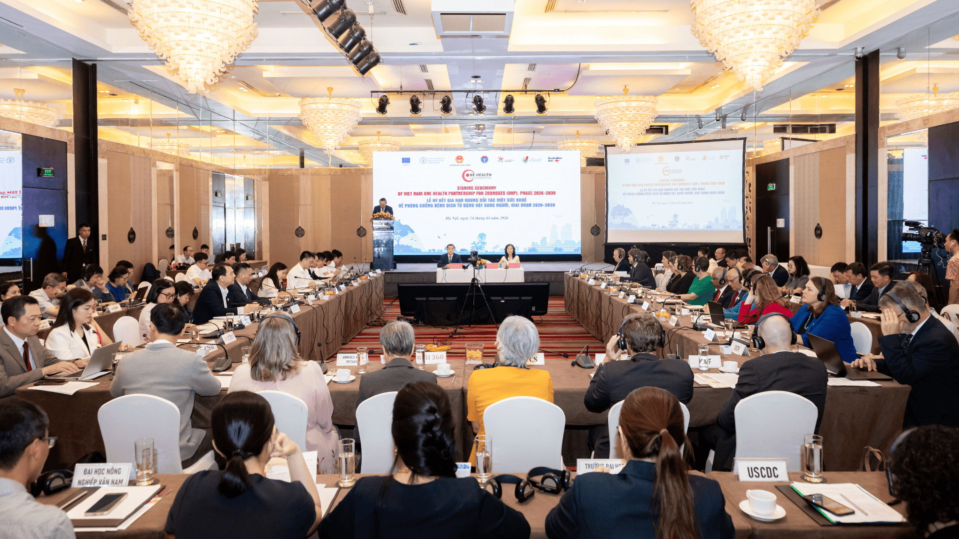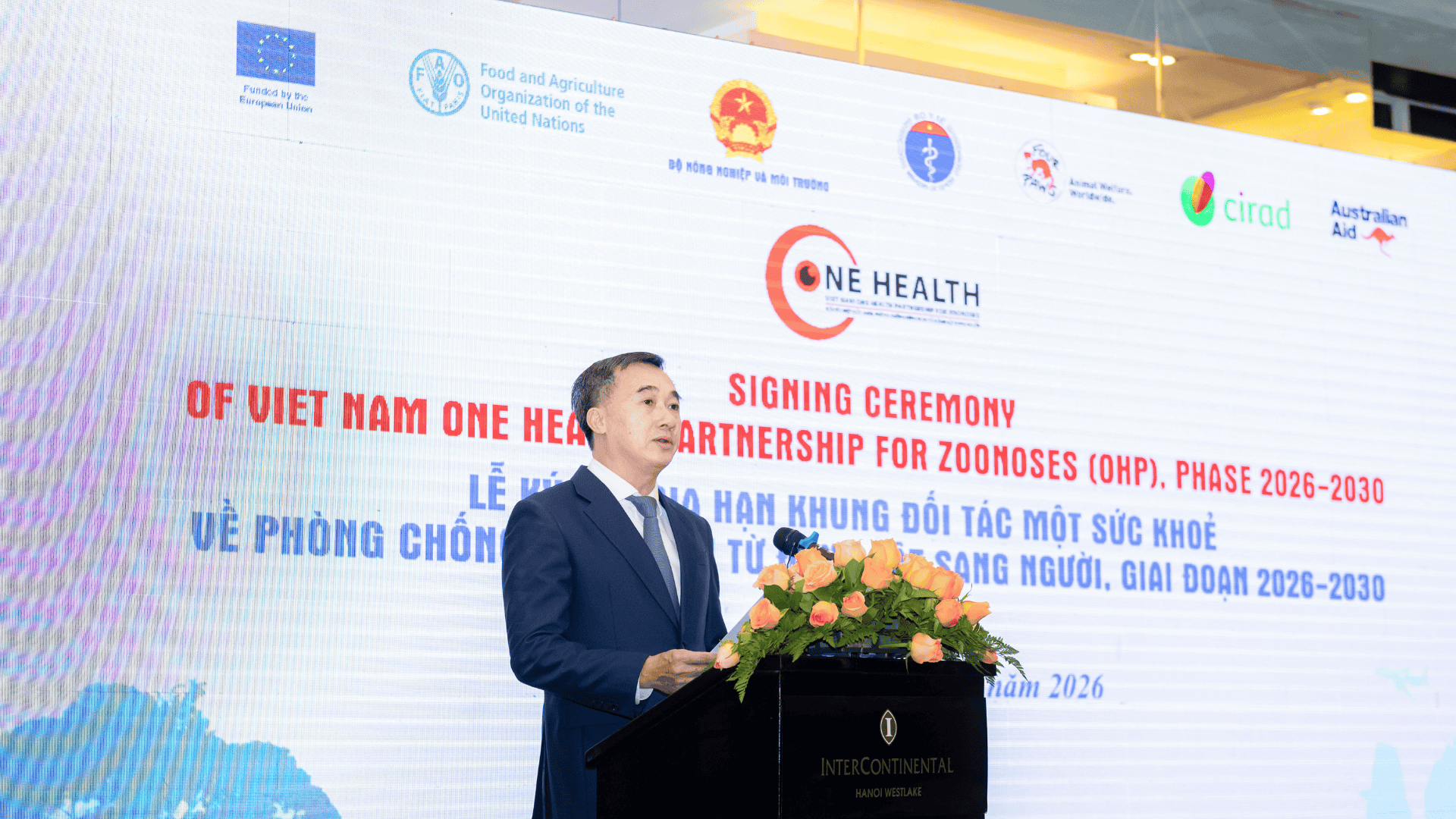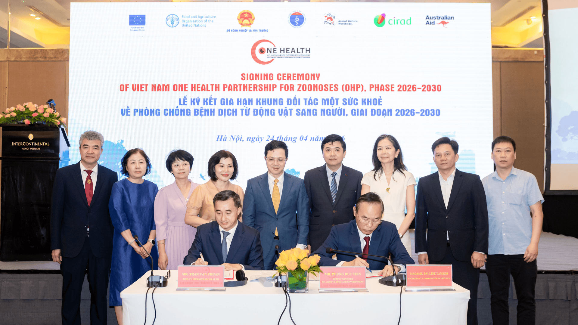 Ngày 24/4/2026, tại Hà Nội, Lễ ký kết Khung Đối tác Một Sức khỏe về Phòng chống Dịch bệnh từ Động vật sang Người giai đoạn 2026 - 2030 đã được tổ chức dưới sự đồng chủ trì của Thứ trưởng Bộ Nông nghiệp và Môi trường Phùng Đức Tiến, Thứ trưởng Bộ Y tế Trần Văn Thuấn và Điều phối viên Thường trú Liên Hợp Quốc tại Việt Nam Pauline Tamesis.