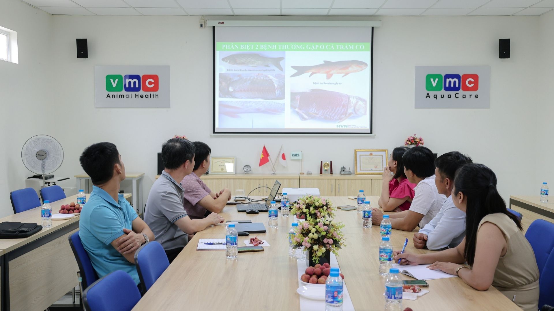 Chương trình tập huấn diễn ra trong không khí nghiêm túc và sôi nổi, với sự tham gia đầy đủ của đội ngũ cán bộ, kỹ thuật viên VMC Aqua Care, cùng các đại lý, nhà phân phối sản phẩm thủy sản khu vực miền Bắc. Nội dung tập huấn tập trung vào việc củng cố kỹ thuật, nâng cao năng lực chẩn đoán, cũng như cập nhật những bệnh lý mới đang được quan tâm trong thực tiễn nuôi trồng thủy sản nước ngọt